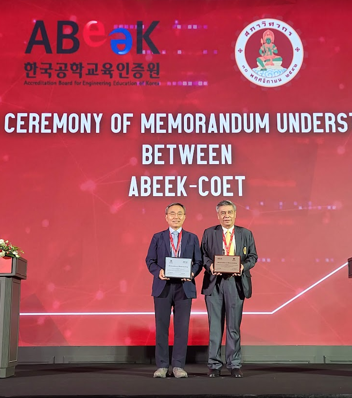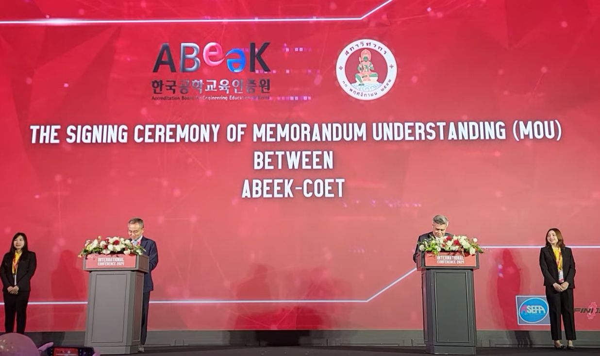 The Council of Engineers Thailand (COET) and the Accreditation Board for Engineering Education of Korea (ABEEK) signed a Memorandum of Understanding (MOU) on Thursday, July 25, 2024, in Bangkok, Thailand, to advance engineering education and foster mutual cooperation.